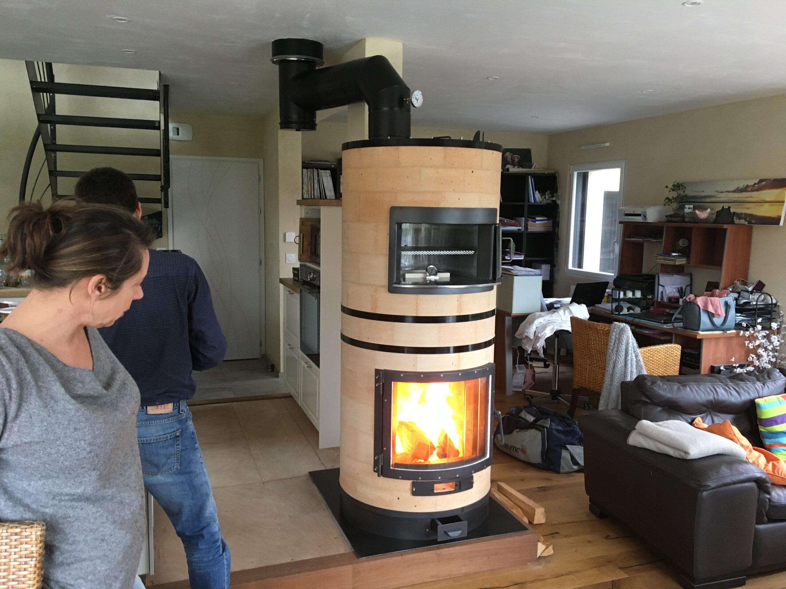Installation d’un poêle de masse Rimandoule PM800 chez nos clients à Saint-Gildas-de-Rhuys.