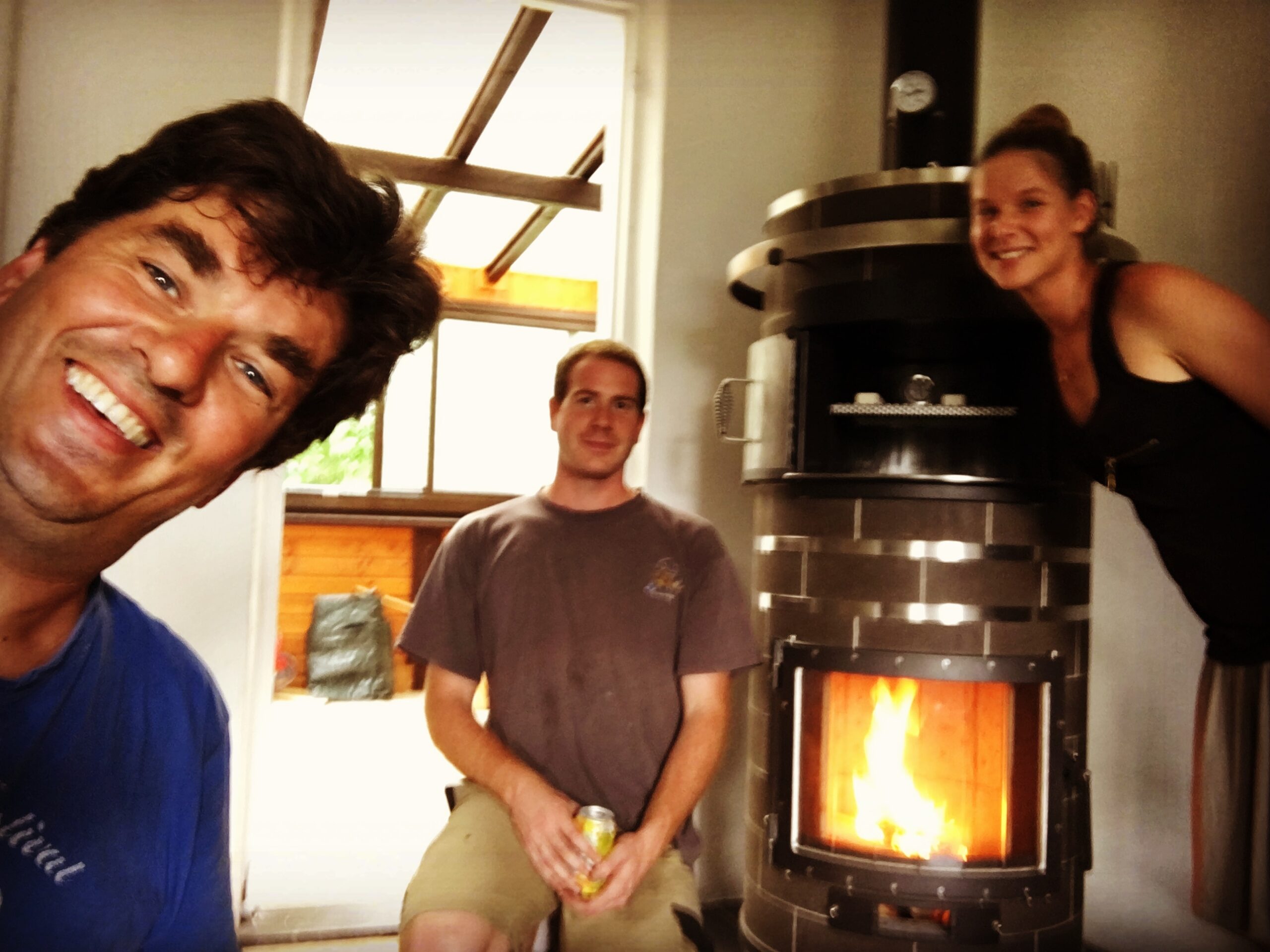 Grâce aux flambées réalisées dans le poêle de masse, de l’eau chaude sanitaire pourra être produite et stockée à température dans un ballon d’eau.